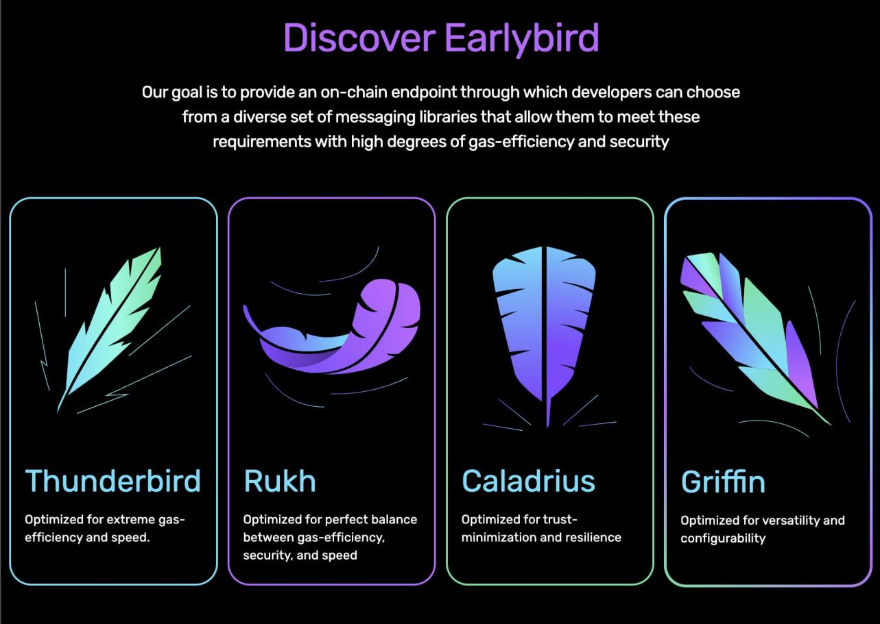 而Orb Labs的思路并非是致力于解决以上三者的问题,而是引入了组合性、模块化的思路,其在Earlybird框架下,构建四个不同的跨链协议,分别用于不同需求的项目。