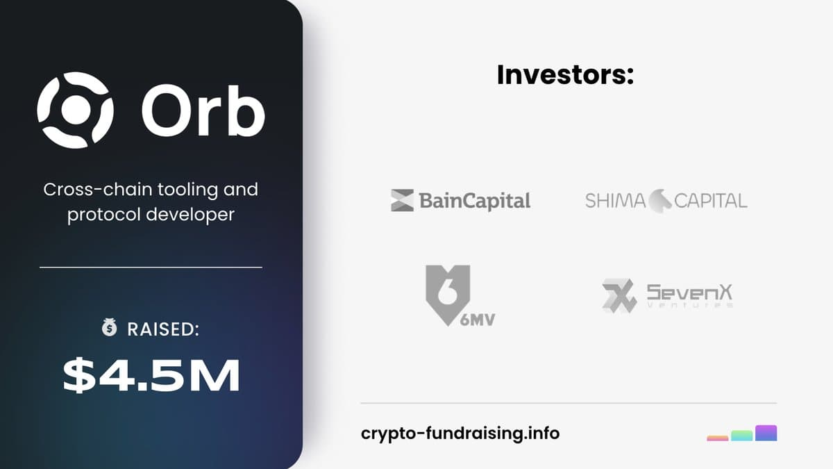 跨链桥开发商Orb Labs近期宣布获得由Bain领投、SevenX等参投的450万美元融资,将专注于开发跨链桥模型,以确保消息和资金在不同链上的低成本交换。