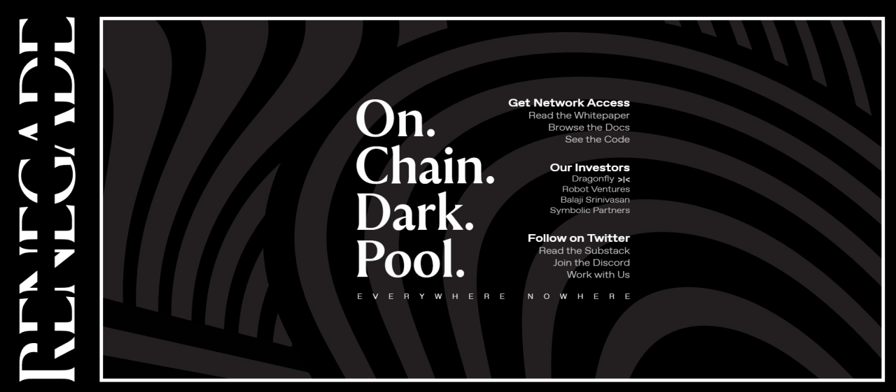 当前的 DEX 是完全透明的,任何人都可以看到用户的余额和交易历史,为满足币圈投资者对交易匿名性、隐私的需求,Renegade 正在开发基于多方计算 (MPC) 和零知识证明的一种新型去中心化交易所(DEX)-链上版本的暗池,从而为用户提供全面的交易隐私,也即去中心化的暗池交易,旨在通过防止抢先交易、三明治和统计套利等行为来改善 DeFi 中的价格执行。