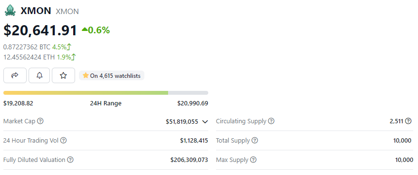 XMON是一个用于召唤神经网络生成像素怪物NFT的平台,由Sudoswap开发者0xmons构建,由于SUDO目前依然不能交易,同时XMON与SUDO之间存在“密切联系”,因此加密社区通常会使用XMON价格对SUDO进行估值。
