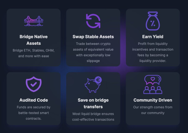 资产通过目标链上的 LP 兑换成 nUSD 或 nETH,桥接,兑换回用户选择的资产。用户还会在目标链上空投少量 Gas,从而使新链的桥接体验更加顺畅。