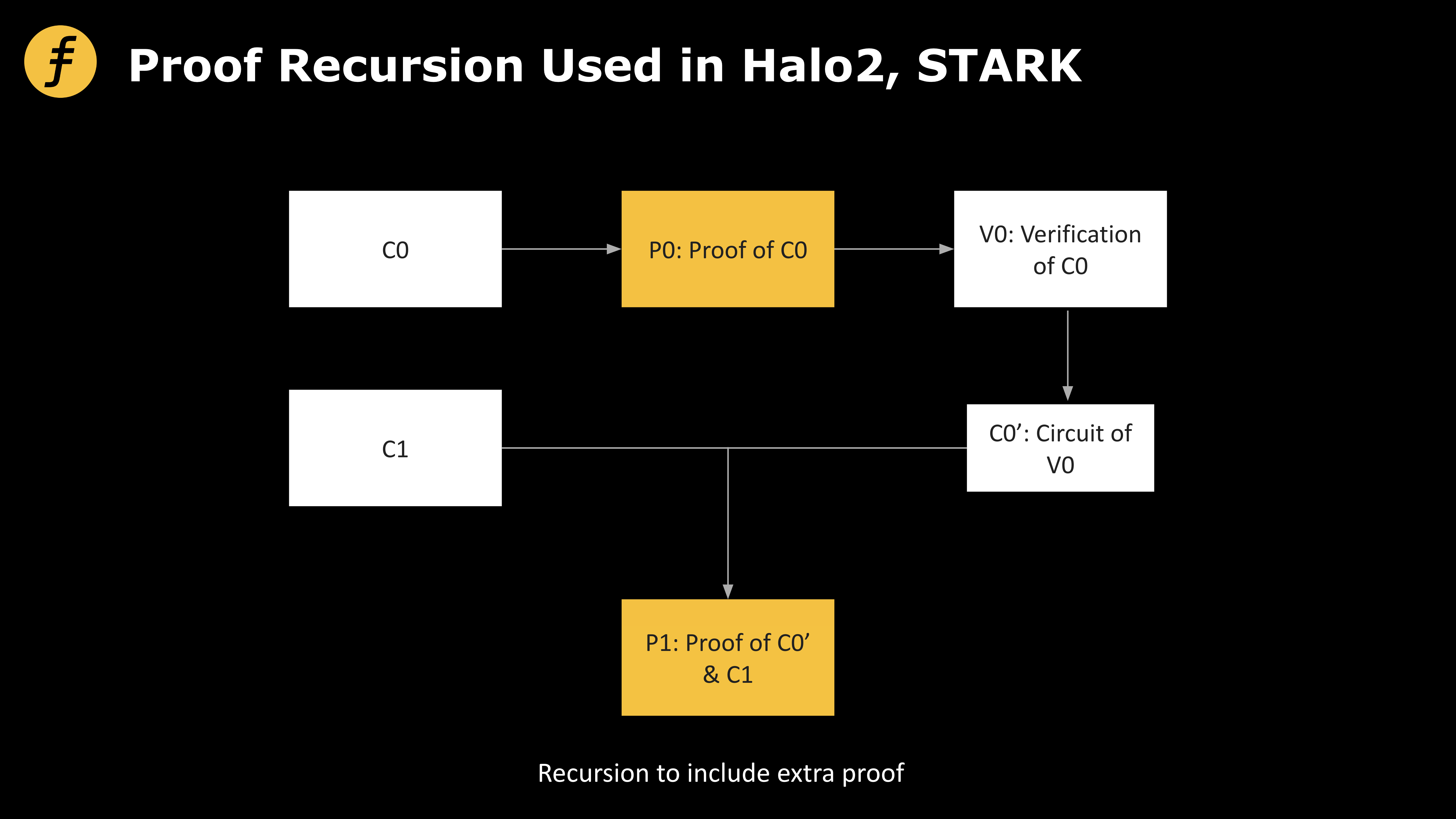 而回顾上述过程可以发现,其实压缩的原理在于将验证证明的过程又转化为了电路,然后生成“对于证明的证明”,所以从这个角度来说,是一种可以不断向下递归的操作,因此也被成为递归证明。