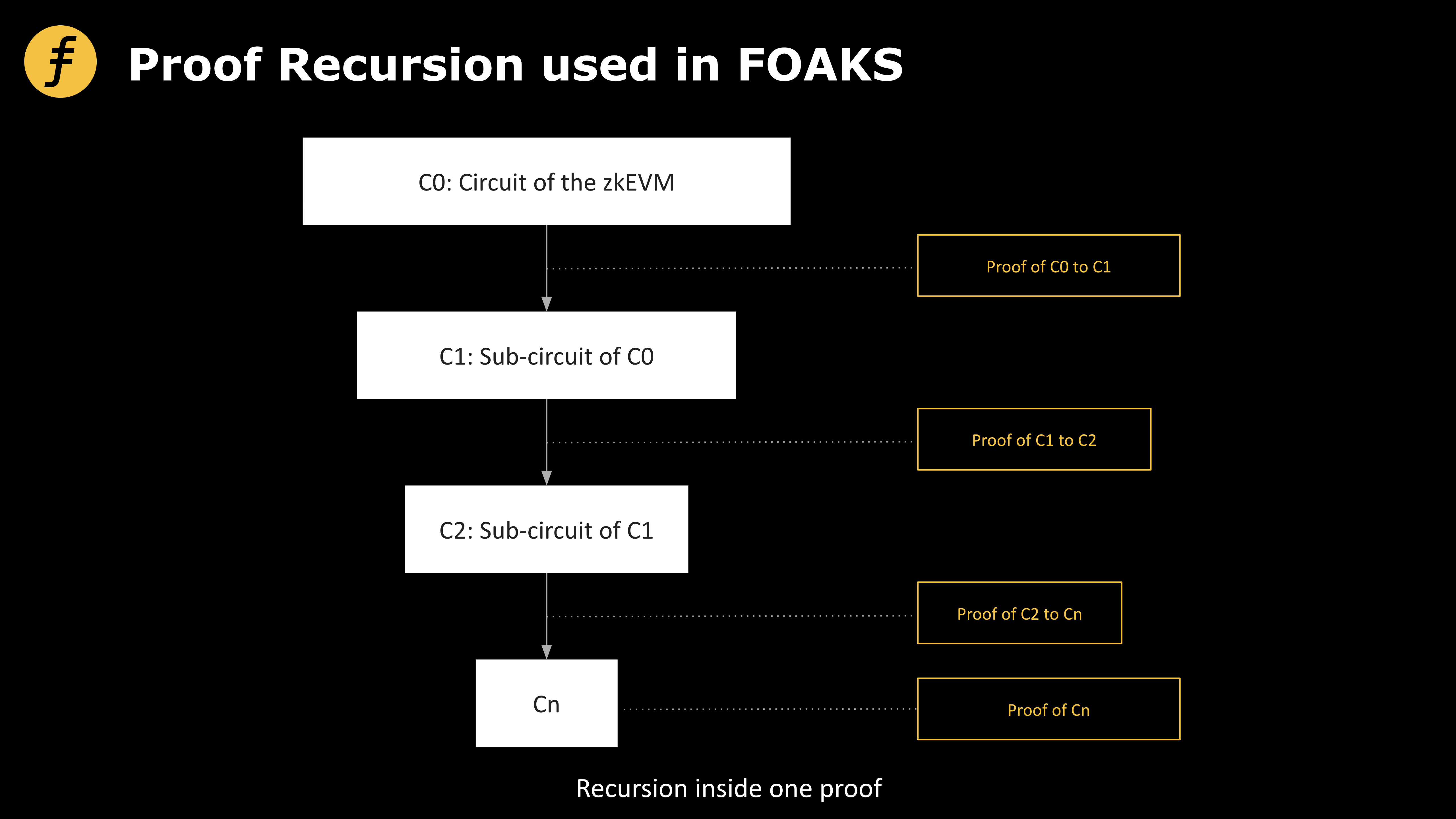 然而,这样的优化仍然停留在具体的零知识证明算法之上的层次,为了进一步提高效率,我们需要更底层的优化和创新,Fox设计的FOAKS算法通过将递归的思想应用在一个证明的内部做到了这点。