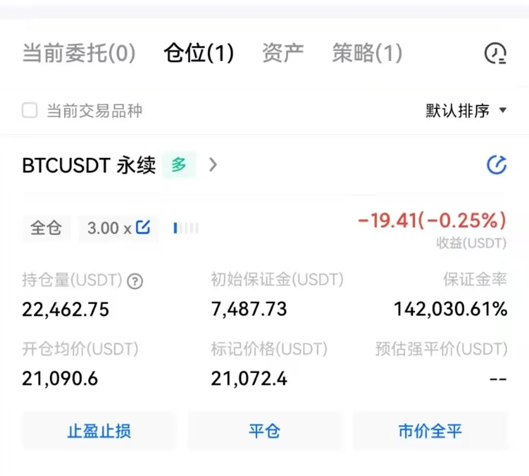 04 挂单成交后,可在持仓界面中可查看订单的相关数据,例如保证金、收益、收益率、预估强平价等。
